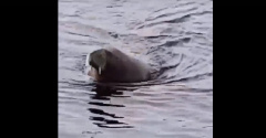 Несмотря на то, что в Кандалакшский залив моржи заходят редко, в черте Кандалакши засняли ластоногого, подплывш…