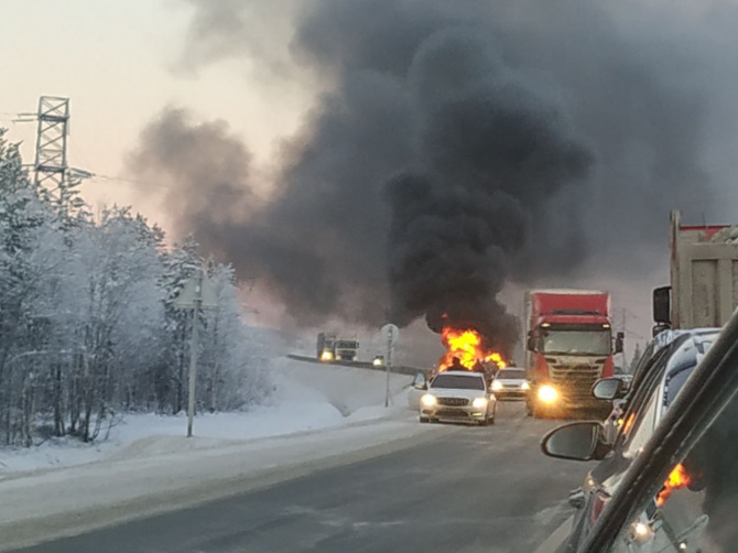 Сегодня, 25 ноября, в дневное время на 1343 км автодороги Р-21 «Кола» произошло столкновение двух легковых транспортных средств, в результате которого произошло их возгорание.