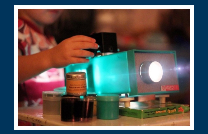 В этот раз будут показаны зарубежные сказки: «Золушка», «Красная шапочка», «Кот в сапогах». Присутствующие смогут познакомиться с устройством фильмоскопа, сами зарядить пленку и озвучить ролик.