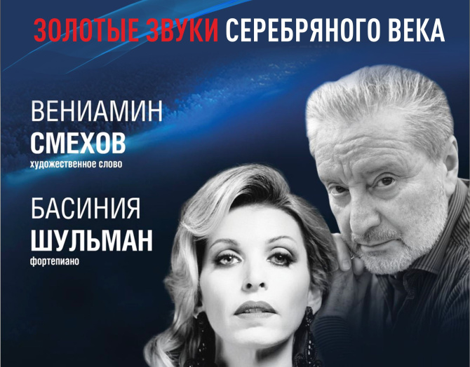 Мурманская областная филармония приглашает северян на музыкально-поэтический спектакль «Золотые звуки Серебряного века» с участием российского актера театра и кино, режиссера, телеведущего и писателя Вениамина Смехова и лауреата международных конкурсов пианистки Басинии Шульман.