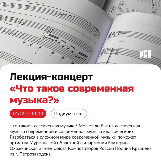 Мурманская областная научная библиотека приглашает северян на лекцию-концерт «Что такое современная музыка?».