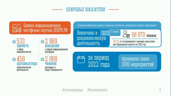 «За 11 месяцев к работе было привлечено более 68 тысяч добровольцев, - отметил Егор Хаценко, - А первые четыре знака отличия самым активным северянам будут вручены на праздновании, посвященном Дню добровольца. Праздник «Сила Севера – в людях» пройдет 10 декабря 2022, регистрация на портале «Молодая Арктика».