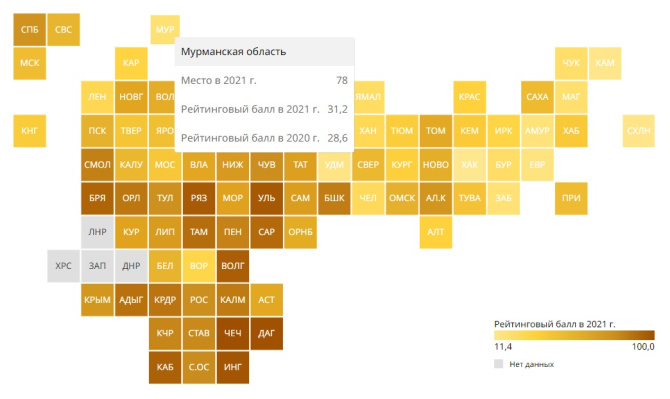 В анти-ТОПе на восьмой строчке расположилась Мурманская область.