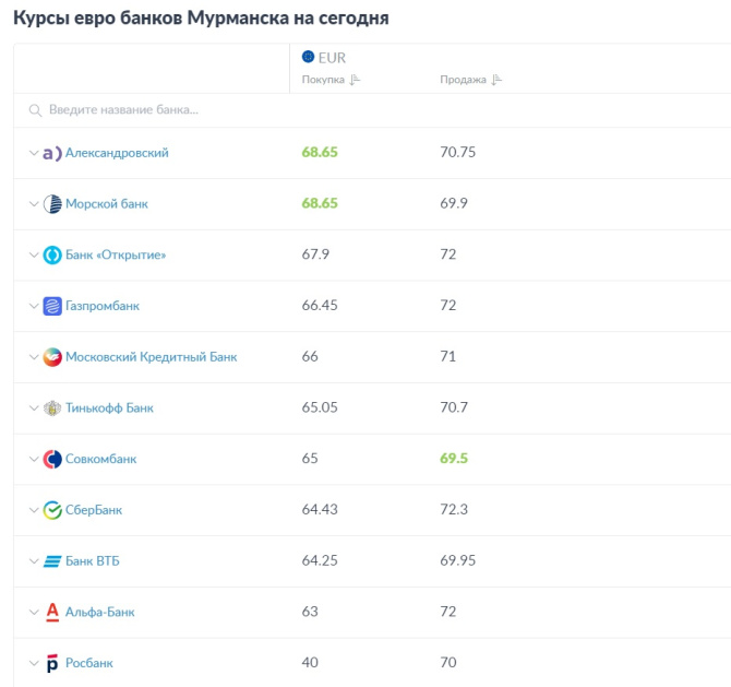 Фото: принтскрин сайта murmansk.bankiros.ru/currency/eur