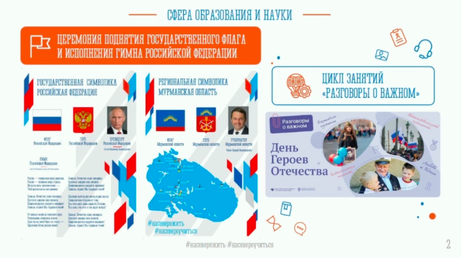 «Все образовательные организации Мурманской области уже оснащены стендами с государственной и региональной символикой, благодаря вам, Андрей Владимирович», - отметила министр.