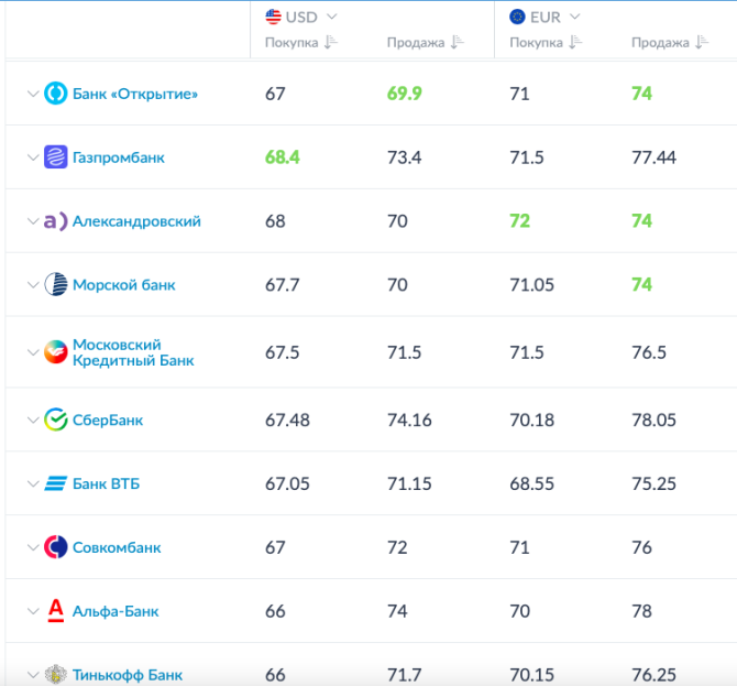 Выгоднее всего сегодня в Мурманске купить доллары и евро в банке "Открытие", продать доллары в Газпромбанке, а евро в банке Александровский.
