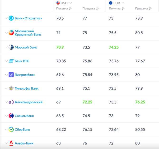 В Мурманске выгоднее всего продать доллар и евро Морскому банку, а купить у Александровского банка.