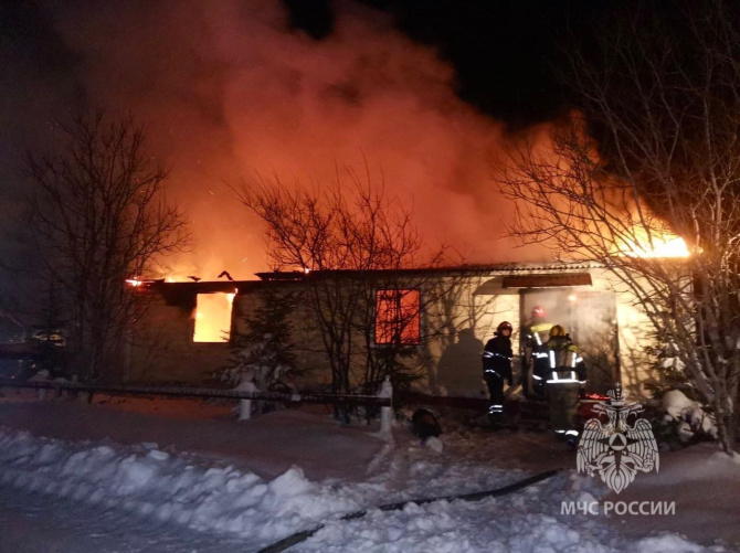 Пожарно-спасательные подразделения Мурманской области вечером 29 декабря тушили пожар на базе отдыха «Кречет».