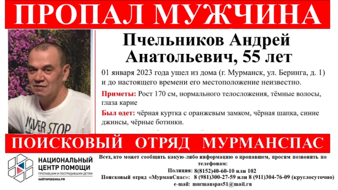 В Мурманске пропал 55-летний Андрей Пчельников.