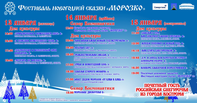 В Оленегорске в шестой раз пройдет фестиваль, вдохновленный советским фильмом «Морозко», который был снят режиссером Александром Роу в Оленегорске в 1965 году.