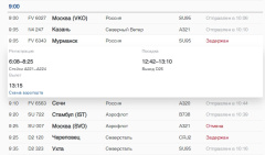 Онлайн табло аэропорта Мурмаши сообщает пассажирам о задержке авиарейсов из Санкт-Петербуга.