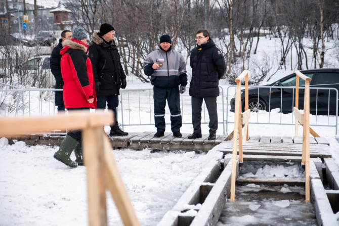 Для праздника оборудована специальная купель, комфортная и безопасная. Сейчас толщина льда в местах, где организована купель, составляет 40 см, что вполне позволяет проводить праздничные мероприятия. В месте купания установлены дополнительные источники света, закуплена мраморная крошка для деревянных настилов, сообщил в своем телеграм-канале глава города Мурманска.
