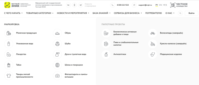 Фото: принскрин сайта честныйзнак.рф