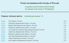 По состоянию на 9:00 (МСК) Мурманская область заняла большую половину ТОПа экстремальных точек погоды в Рос…