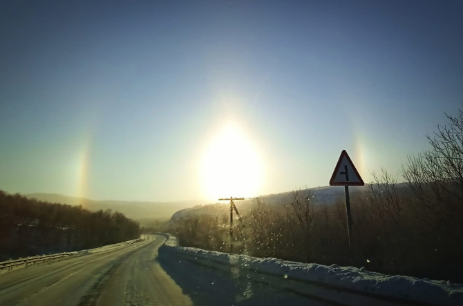 В Мурманске переменная облачность, местами снег. Ветер южный умеренный, на северо-западе местами сильный, поземок. Температура воздуха -9-14°. Гололедица.