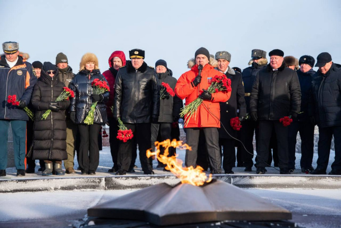 Участники церемонии возложили к Вечному огню цветы и почтили минутой молчания погибших северян, сражавшихся за мирное небо над головой.