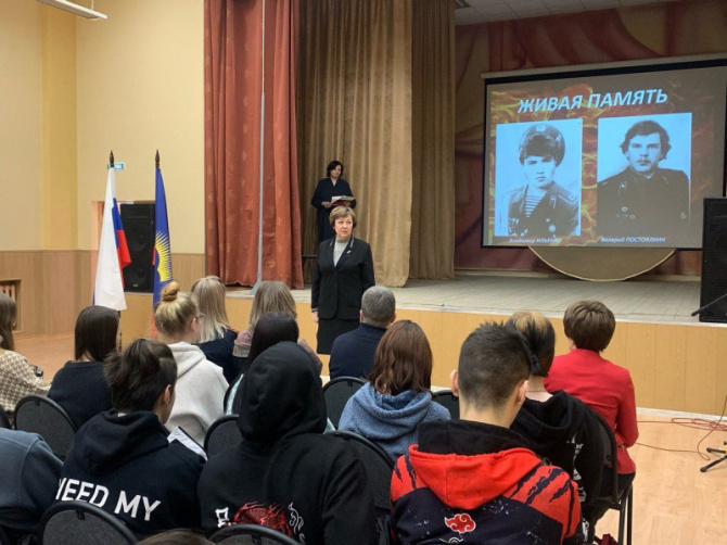 Память героев почтили минутой молчания, а затем студенты и преподаватели возложили цветы к мемориальной доске, установленной на здании колледжа.