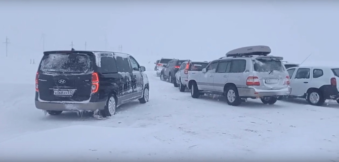 Порядка 30 автомобилей провели ночь в снежном плену по дороге в или из Териберки.