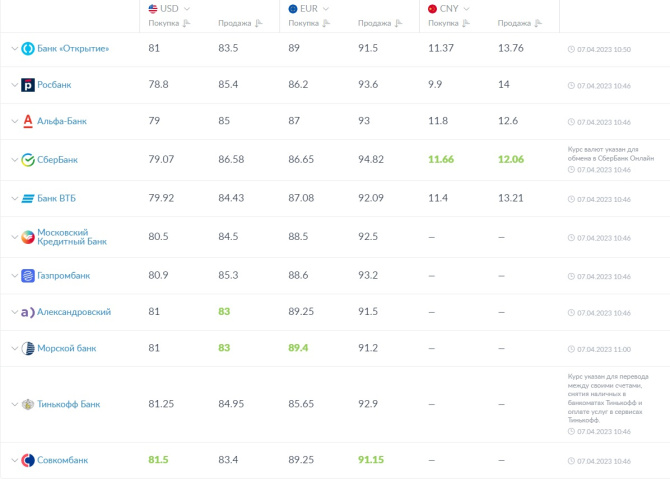 В Мурманске выгоднее всего продать доллар в Совкомбанке, евро в Морском банке, а юань в Сбербанке. Купить доллар выгоднее всего в Александровском и Морском банках, евро в Совкомбанке, а юань в Сбербанке.