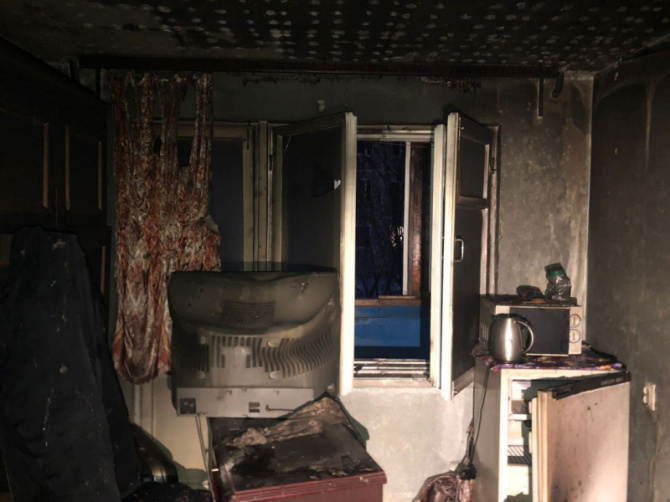 В 23:18 пожар был полностью потушен. Однако, огонь успел уничтожить домашние вещи на площади в 1 квадратный метр.