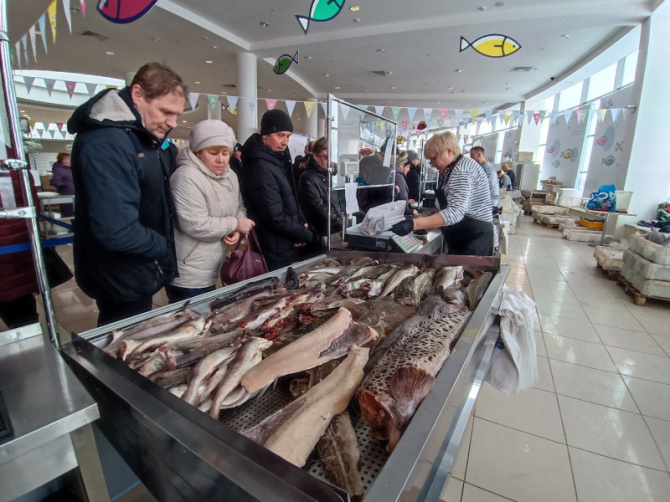 В мурманском ТРЦ "Форум" открыта ярмарка "Наша рыба", где представлена широкая выборка рыбы и рыбной продукции высокого качества.