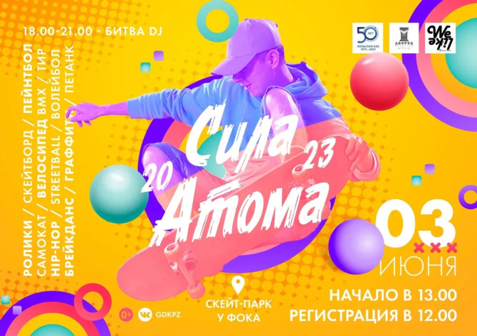Городской открытый фестиваль молодёжных субкультур «Сила Атома-2023», посвященный 50-летию станции и 55-летию города Полярные Зори, пройдет 3 июня в городе Полярные Зори на скейт-площадке в «Нашем парке». Начало в 13 часов.