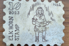 Иван Демко художник из Ловозера создал рисунок марки-виньетки (ELK HORN STAMP) из рога лося. Рисунок включает в …