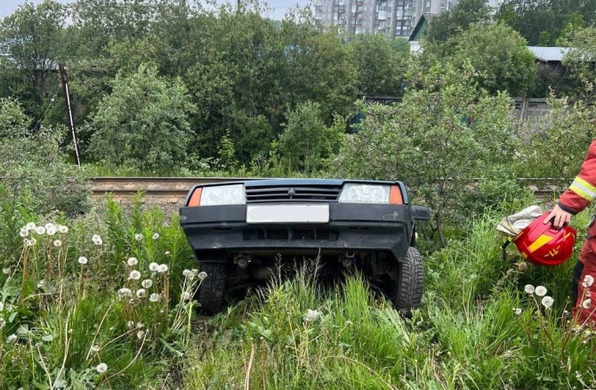 Спасатели осмотрели автомобиль ВАЗ-21099, который съехал задним ходом в направлении железнодорожных путей. Причина ДТП устанавливается сотрудниками УГИБДД по Мурманской области.