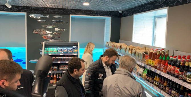 В ходе своего рабочего визита Максим Орешкин и Андрей Чибис посетили фабрику и магазин под названием «Мурман Сифуд». Помощник президента отметил, что цены на рыбную продукцию здесь ниже, чем в Москве.