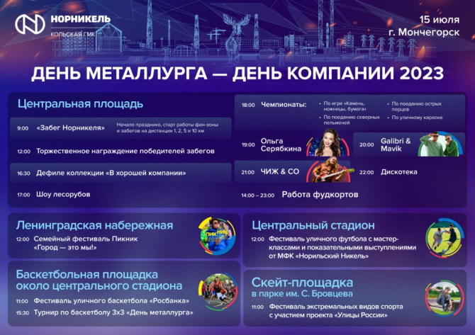 Мончегорск 15 июля отметит День металлурга. На праздничные гуляния, спортивные активности и семейный фестиваль ПикNik "Город - это мы!" приглашаются все желающие!