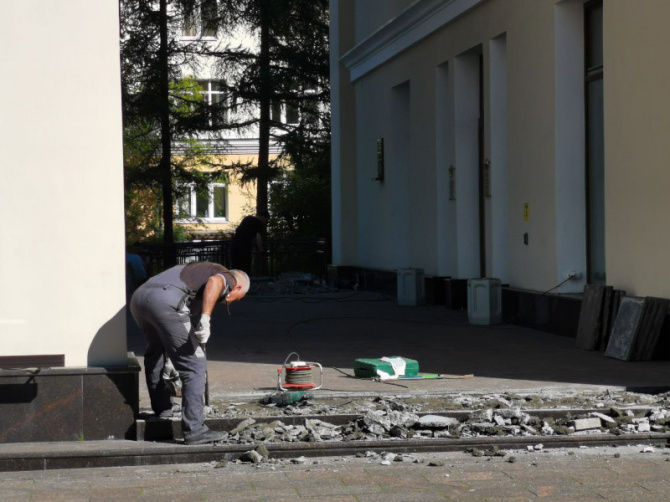 В Мурманске возле здания драматического театра вновь проводятся ремонтные работы. Специалисты занимаются восстановлением крыльца драматического театра. Об этом ИА «Би-порт» сообщили очевидцы.