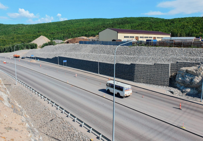 Поскольку часть трассы теперь проходит по новому маршруту, для этого были проведены буровзрывные работы. Более 306 тыс. м³ скальных пород были удалены при прокладке магистрали.