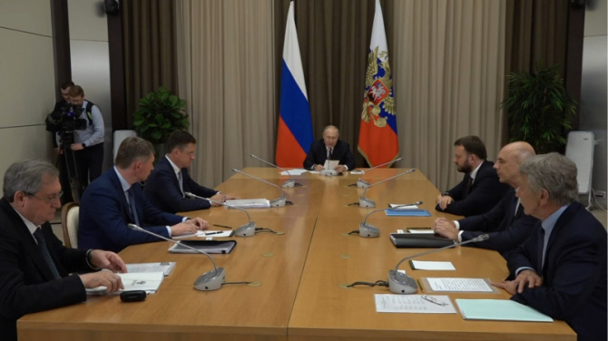 Президент России Владимир Путин провел совещание по вопросам реализации проекта «Мурманский СПГ». На совещании присутствовали: председатель правления ПАО "Новатэк" Леонид Михельсон, заместитель председателя правительства РФ Александр Новак, министр финансов Антон Силуанов, помощник президента Максим Орешкин, министр экономического развития Максим Решетников и министр энергетики Николай Шульгинов.