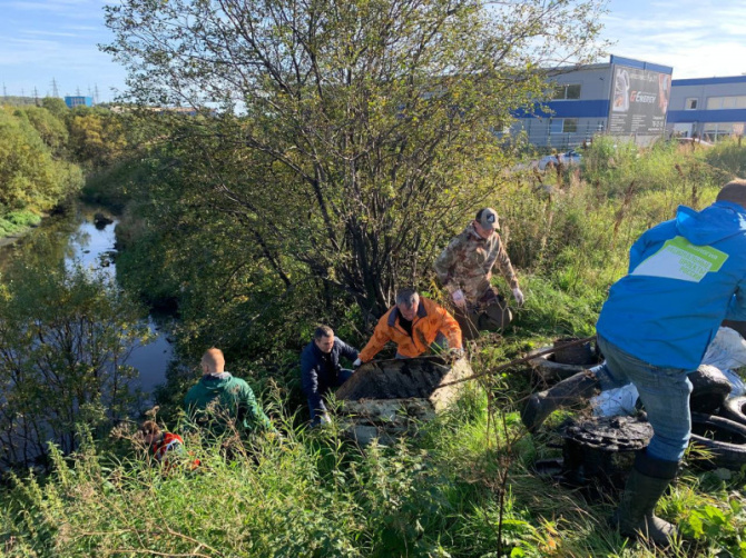 В Мурманске прошёл субботник, посвящённый очистке берегов и русла реки Роста от мусора. В этом мероприятии участвовали сотрудники Минприроды Мурманской области и представители администрации Ленинского административного округа города.