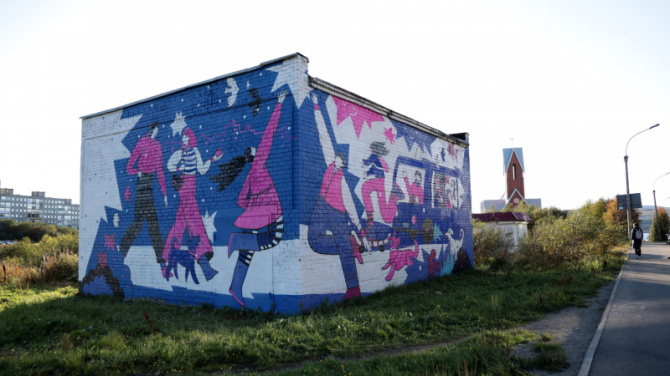 На улице Достоевского в Мурманске появился новый мурал в рамках проекта «Контакт», основной частью которого станет аудиогид.