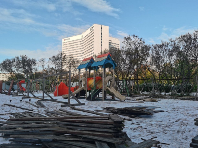 В мурманском сквере, расположенном возле Дома культуры имени С.М. Кирова, начались работы по замене детской площадки. Согласно информации, предоставленной городской администрацией, на данный момент в сквере проходят работы по установке ограждения.