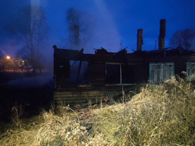 Ночью в Умбе произошел сильный пожар, который охватил одноэтажный нежилой дом №18 на улице Строительная.