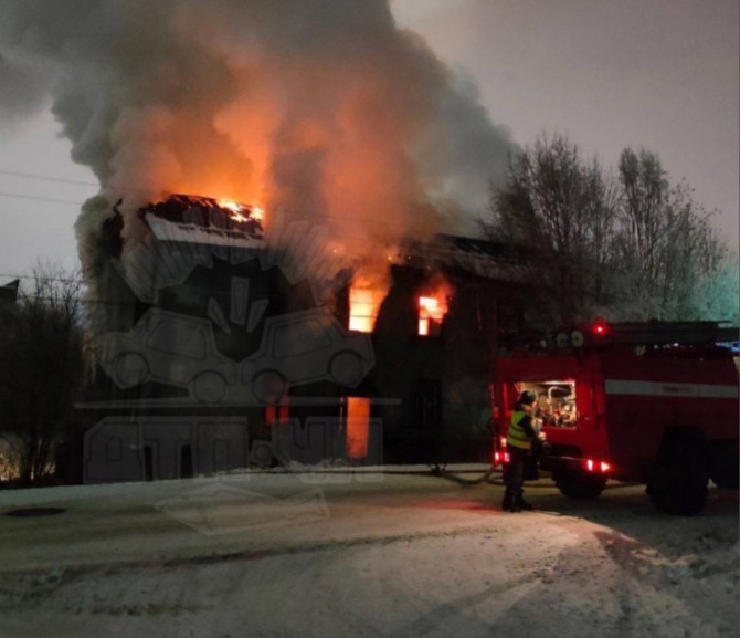 В Мурманске ночью на улице Фрунзе, 32/6, произошел пожар в двухэтажном нежилом доме.