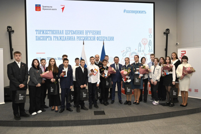 В преддверии Дня народного единства губернатор Мурманской области Андрей Чибис вручил первые паспорта 20 молодым жителям Мурманска, Североморска и Кольского района. Все они являются участниками регионального отделения «Движения Первых».