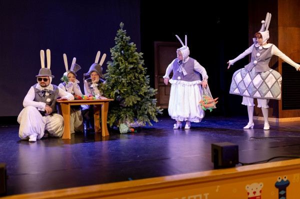 «В нем примут участие семь актеров, и все они выйдут после спектакля на интермедию. Детей порадуют наши новогодние зайцы – символ этого года, которые передадут бразды правления следующему знаку, а также Дед Мороз со Снегурочкой», — сообщил «Большому Радио» главный режиссер театра Пётр Васильев.