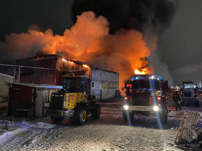 Пожар, который охватил склад рыбной мануфактуры в жилом районе Три Ручья в Мурманске, тушили чуть больше 6 часов.
