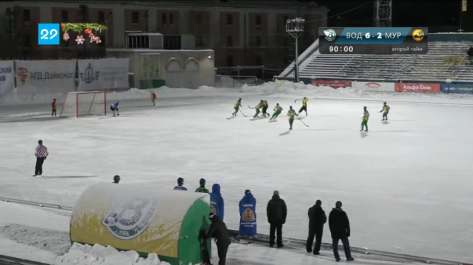 В среду в Архангельске на льду стадиона «Труд» состоялась встреча двух участников Чемпионата России по хоккею с мячом — местной команды «Водник» и «Мурман».
