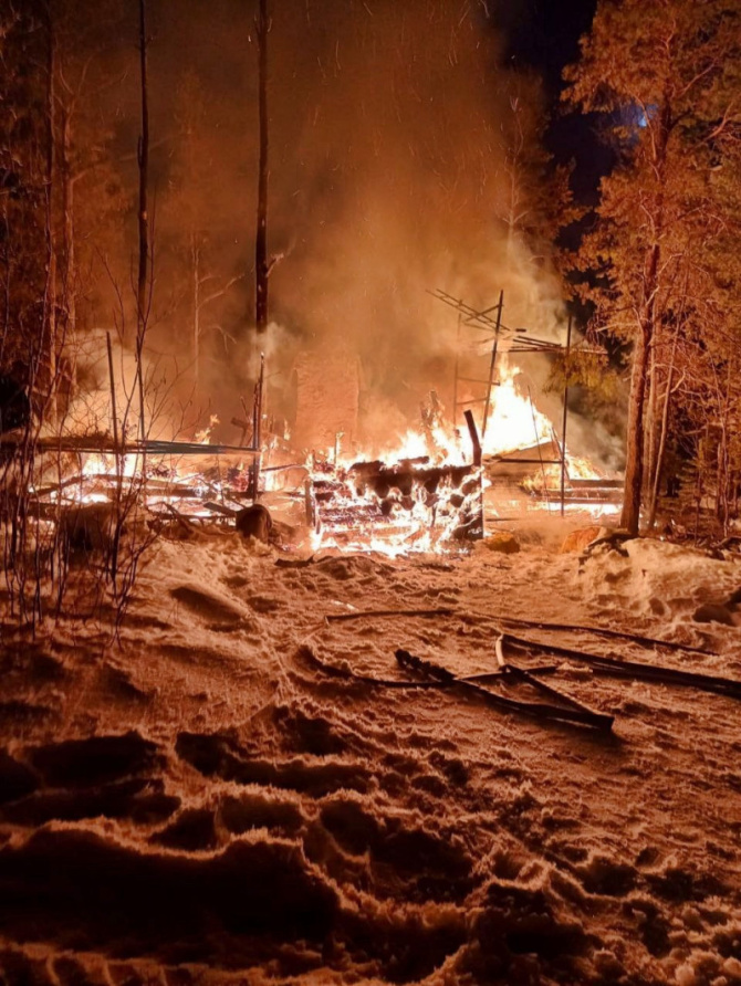 «В результате пожара деревянный двухэтажный дом и имущество, находящееся в нем, сгорели на всей площади - 72 м²», — сообщили в Управлении по ГОЧС и ПБ Мурманской области.