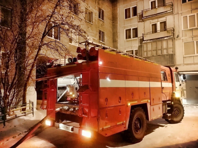 Ночью в квартире пятиэтажного дома по Причальной улице в Мурмашах произошел пожар. На месте происшествия работали дежурные караулы ПЧ-24 и 20 Кольского филиала, а также ПСЧ-7.