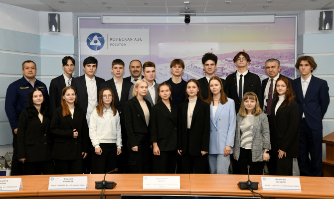 Лучшие ученики школ города Полярные Зори также получили возможность своими глазами увидеть как работает атомная электростанция. Они побывали на экскурсии в Информационном центре, посетили машинный зал турбинного цеха и блочный щит управления АЭС. В завершении встречи ребята получили подарки на память с символикой Кольской АЭС.