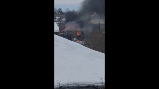 На улице Генерала Фролова в Мурманске произошёл пожар. Огонь охватил гаражный бокс рядом с домом №14 (автосервис).