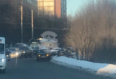 Днем в Мурманске на Кольском проспекте произошло столкновение трех автомобилей: Lada Largus, Volksw…