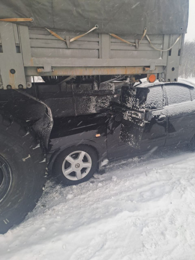 В Печенгском округе произошло дорожно-транспортное происшествие около 12:00. Водитель Nissan столкнулся с грузовым автомобилем, двигавшимся в том же направлении.