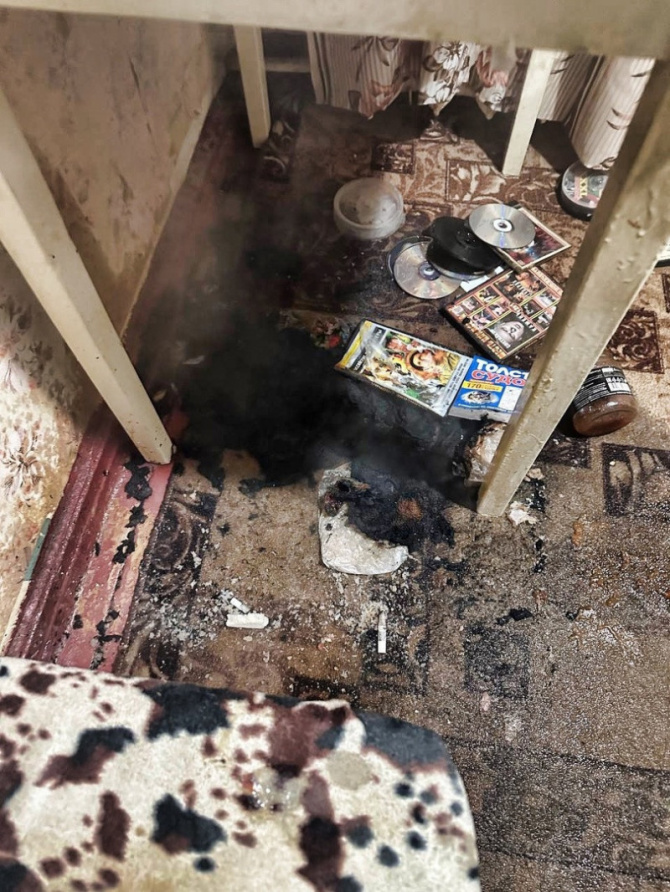 Пожарные вскрыли дверь в квартиру. Спустя несколько минут они смогли ликвидировать пожар с помощью подручных средств.