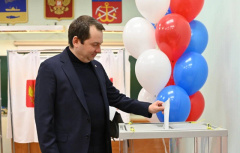 Губернатор Мурманской области Андрей Чибис посетил избирательный участок вместе со своей су…
